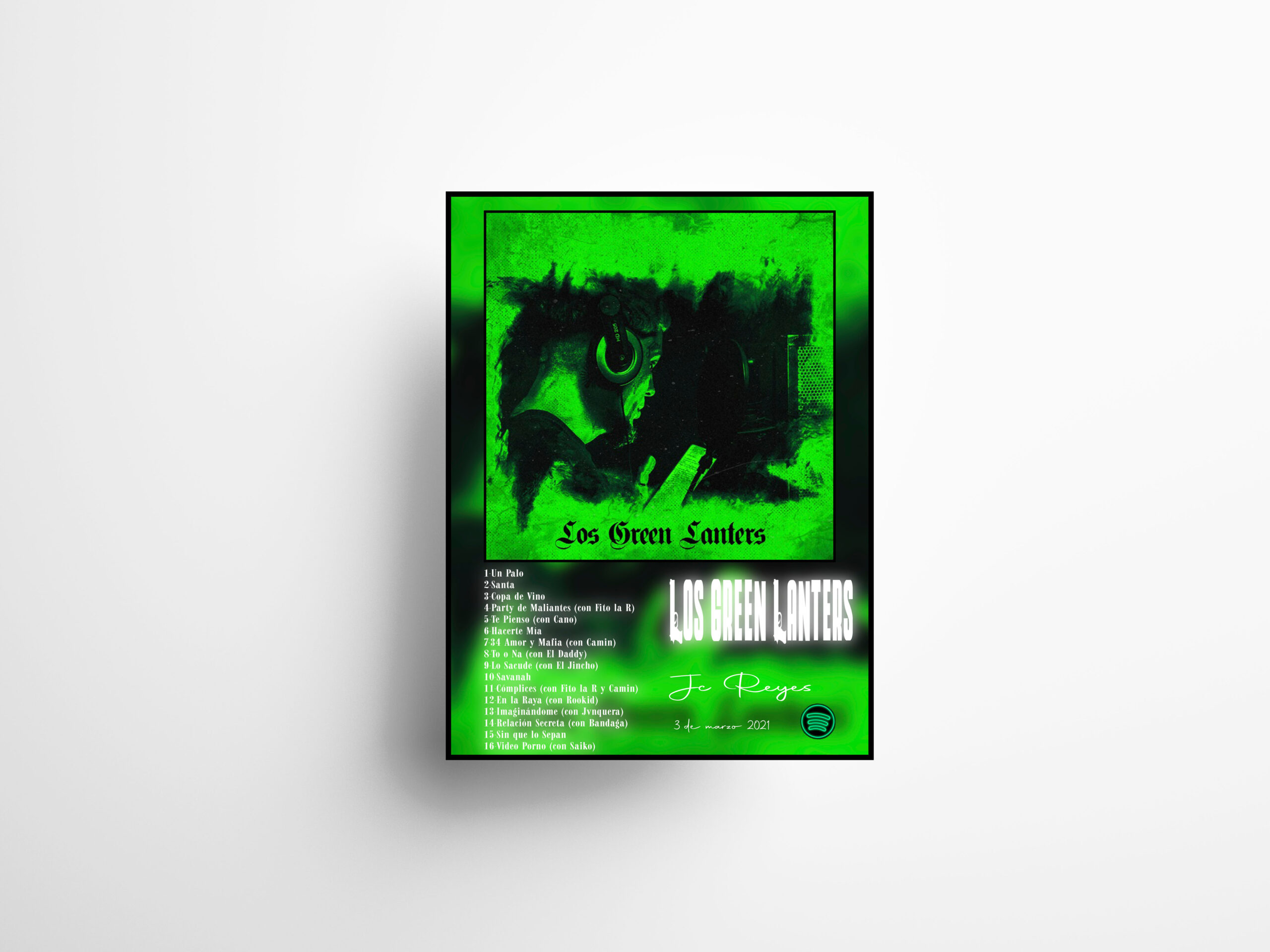 El poster del álbum ‘Los Green Lanterns’ de JC Reyes es una obra de arte visual que captura la esencia de la música en castellano. Con colores vibrantes y una composición cautivadora, este poster no solo representa el estilo de las canciones, sino que también es un atractivo elemento decorativo para cualquier espacio.